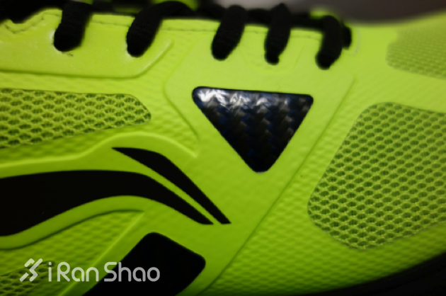 鞋身用了编织纹路,看似碳纤材料,碳纤主要是用在高端的篮球鞋上,价格昂贵。按照“双渡”跑鞋的整体价格,所使用的应该是碳纤的替代材料,起到鞋身的支撑作用。