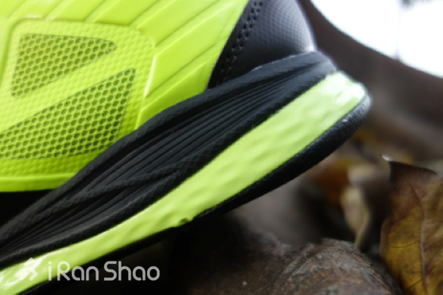后跟“热切 ”LINING 反光 LOGO,夜间运动的安全保障。“云”减震材料覆盖了整个后跟,具体减震功能如何,待小编实穿后进一步测试。