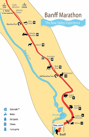 赛事的起点和终点均设在班夫中央公园,届时这里将变成热闹的跑步嘉年华,沿途的观众将为参赛者加油鼓劲。设计的的折返线路将让选手领略到班夫国家公园内的微米里翁湖 (Vermilion Lake),遗迹小径 (Legacy Trail),弓谷观景大道 (Bow Valley Parkway)等优美景观。除了小镇居民,沿途还会随机出现各种萌萌的野生动物给选手加油哦。
