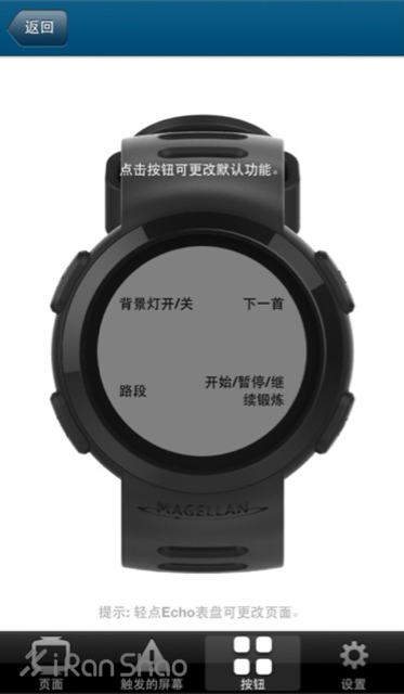 麦哲伦ECHO与其称作为一款跑步手表,不如称其为一件智能可穿戴设备更为贴切。因为echo本身并没有独立的智能工作系统,运动数据的采集和分析都是通过智能手机的移动应用程序所完成;echo所提供的是一个扩展的更为便利的可视界面,以及对移动应用程序便捷的移动操控从而带来更好的智能运动体验。