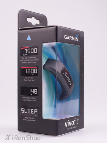 佳明(Garmin)Vivofit 手环包装并不复杂, 长方形的纸盒透过透明部分可以看到手环。在包装侧面提示手环的基本功能: 时间,睡眠,记步,卡路里计算。是健康方面最基本的几种参数。