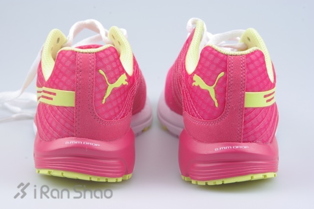 一体化鞋面没有任何拼缝,防止了摩擦又保持了足够的柔软。保证了和脚部的贴合感。侧面是Puma黄绿色标志性的Logo。