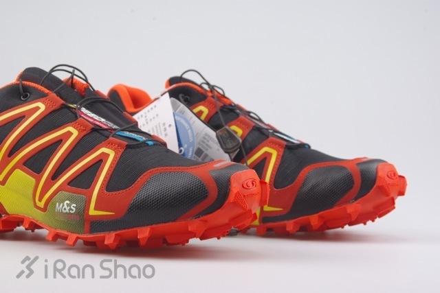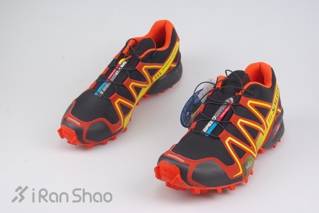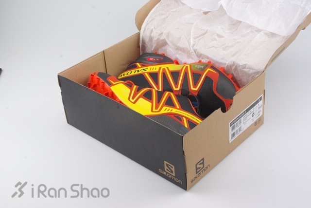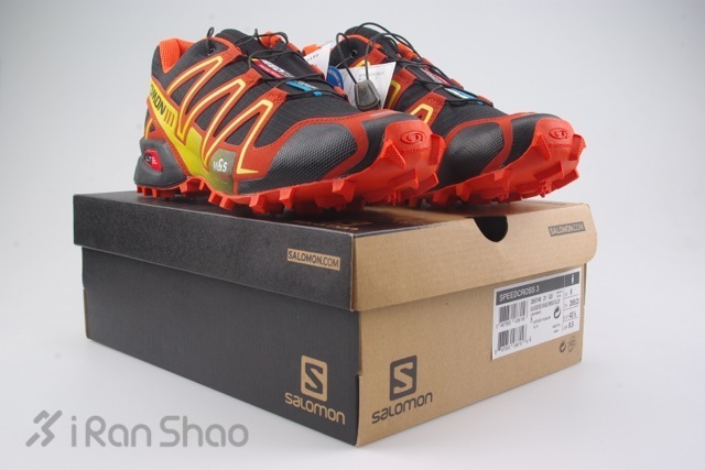 经典的Salomon包装打开后看到新款Speedcross。 秉承了Salomon 一贯的色彩设计。评测的鞋子为黑色,红色,黄色组合配色。