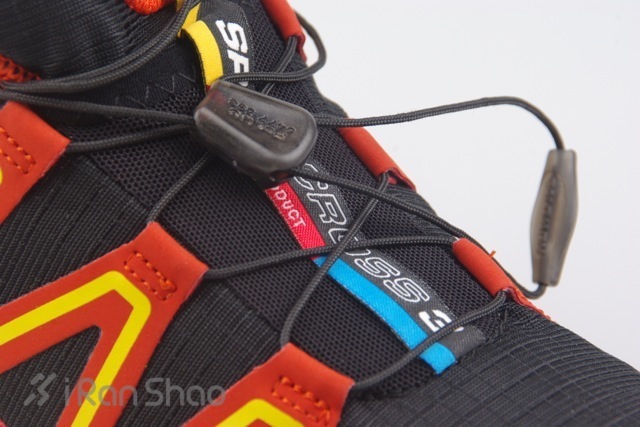 鞋带是Salomon标准的快抽鞋带。这种鞋带的好处是能够快速系紧鞋子,而且在跑动过程中不会松开。