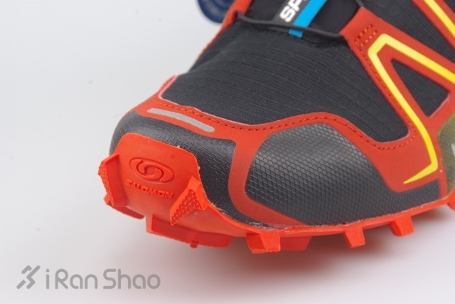 鞋底前部有橡胶翻起,同时将鞋底的咬花延伸到前部。在鞋头部位除了橡胶还增加了PU而非网格布。