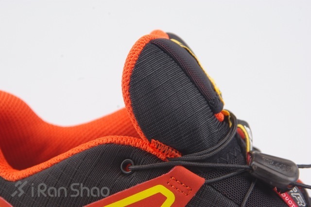 鞋身高度正常,相对Salomon其它型号脚部空间宽裕很多。为了鞋子与脚部的贴合度,鞋跟处做了足够的弧度和包裹。在足弓处进行了非常特殊的支撑,整个足弓位置悬空。这个设计可以减少长距离足弓位置的疲劳感,但舒适性如何暂时还不能确认。