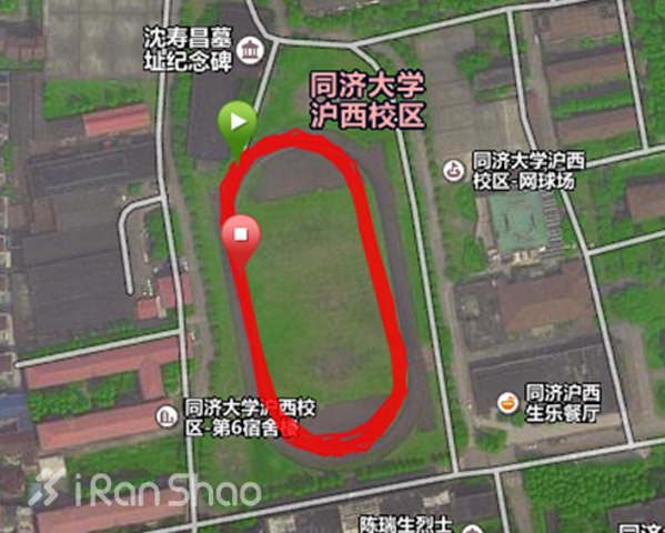 三、操场:10km,理论上应该是整圈倍数,但下图可看出误差有个几十米,属于可接受范围.