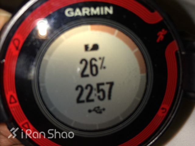 1、训练模式下是否号称规格书上的10小:。事实出乎意料,耗时近10小时后还有26%剩余电量(Garmin手表需充电状态下才能显示电量百分比)。持着半信半疑的态度,笔者又做了在佩戴心率带的情况下的测试,数据依然惊人(7.5小时,44%电量)。
