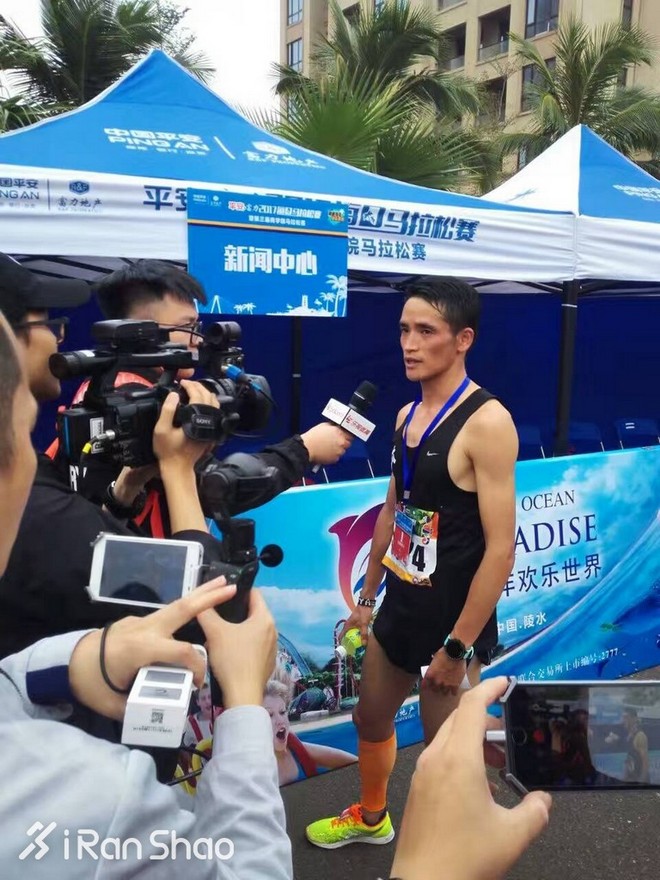 赛前他仅仅快速准备三个星期,中间还有一个礼拜发烧,实际只练两周;“三亚跑2小时18分,我已经很满意了。因为准备少,能进2:20就不错了。”