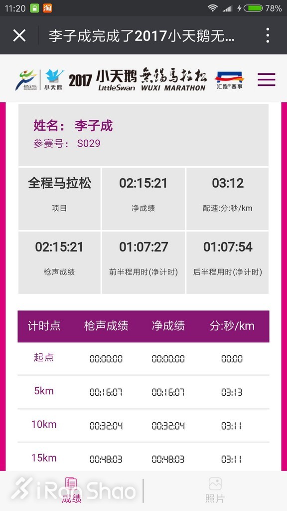 李子成参加锡马的决定,是跑完三亚后的3月初作出的。2015年他拿过这一赛事的冠军(2:18:23),因此对无锡“有一种情结”。