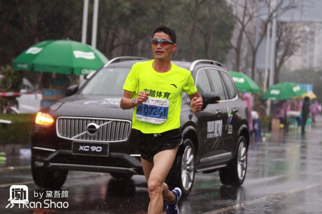 李子成掉队之前两三分钟,大约35公里过后,又出现一个新考验:开始下雨了。