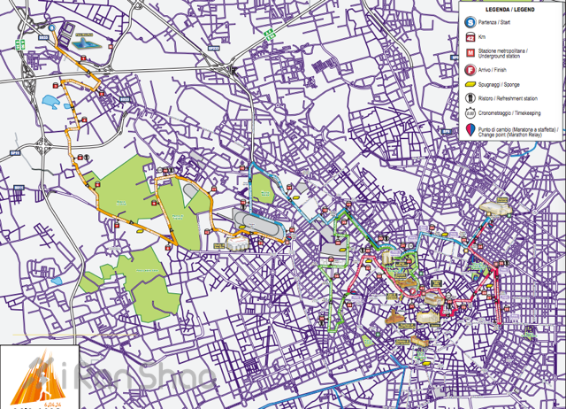 比赛路线设计非常经典,贯穿米兰最经典的街区,出发于 Rho 的via Buonarroti (gates of the Fiera Milano以外), 第一阶段路线平坦,直通城区,经过San Siro区域, 然后到达广为人知的 Meazza博物馆, 然后转弯绕过Montagnetta抵达米兰城市心脏位置,沿着 Corso Sempione。顺着路线,跑者会看到众多城市象征的纪念碑,和平穹,市民广场, Sforzesco教堂, 中心站,中央教堂,Scala大剧院……欧洲宗教文化的气息从比赛路线沿途建筑上扑面而来。