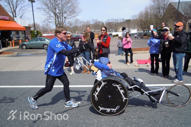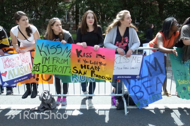 尤其到了卫斯理学院前那享誉全球的“ Kiss Me ”人墙,不跑出你的 PB 配速真对不起那些热情如火的妹纸;还有赛道上一定能遇到的波士顿马拉松 30 年传奇—Hoyt 父子,再怎么追求成绩都要停下脚步来陪陪他们;当然, 32 公里处Newton 小镇的 Heartbreak Hill会令你遭遇撞墙的艰苦,但它和这个马拉松周末带给你的快乐相比真算不了什么。