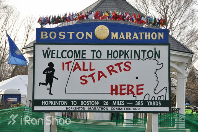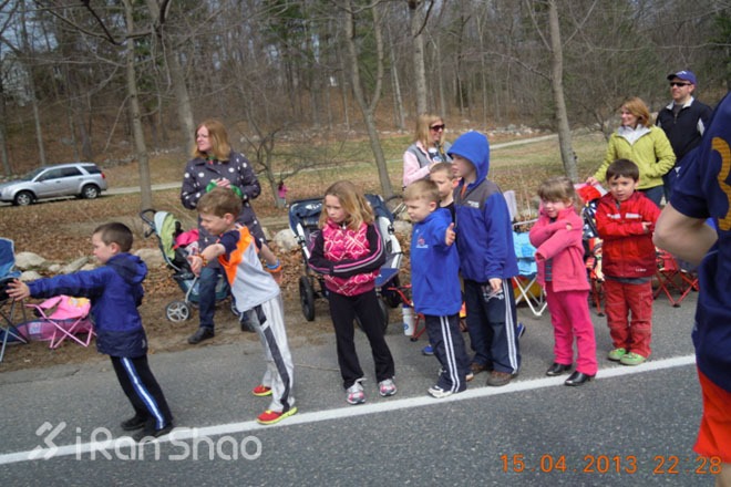 几乎动用全州校巴把参赛者拉到40公里外的起点 —Hopkinton小镇,征用该镇中学校园作为“运动员村”供跑者在此候跑,以缓解狭小起跑区压力,这是波士顿马拉松的特色。在这里,参赛者、志愿者、赞助商的互动堪称绝好的赛前动员。