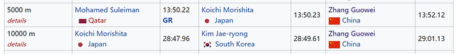 那届获得万米冠军和5000米亚军的,也是一个日本名将:比张国伟小8岁的森下广一(Morishita Koichi)。