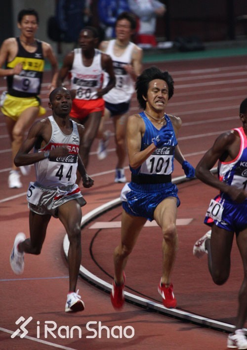 几天后的5000米决赛,日本队显然学乖了。张国伟至今仍记得那位大名鼎鼎的日本高手:“他叫新宅雅也(Shintaku Masanari,下图右前),当时是日本最好的运动员。他吸取万米比赛的教训,一出去就跑了,我跟到最后就跟不住了。”