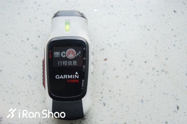 行程信息是Garmin Virb Elite区别于其他运动摄录设备的一项特有功能。Virb Elite内置的各种传感器诸如GPS模块,气压计,G值感应装置等可以在运动摄录的同时进行各种运动数据信息的采集和播报。这也使得Virb Elite不再是单纯的摄录设备,进入行程信息的界面你就可以通过Virb Elite实时了解当前的运动状态以及精准的运动数据信息。行程信息功能按照不同的运动模式提供包括显示速度和G值的高速模式,显示海拔高度及时间的山地模式,显示爬升和下降距离及总里程的越野模式,显示方向的指南针模式,显示行进速度,平均速度及最大速度的行进模式以及显示当前时间,开机时间及日出日落时间的时间模式共六个数据仪表界面。