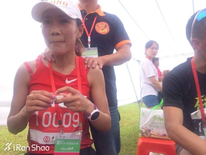 5月28日在营口鲅鱼圈国际马拉松,她以1:15:53夺得半程组亚军,仅次于一名非洲选手。(下图为何引丽夺得2015年横店半马冠军)