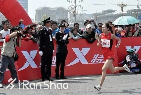在人海中狼奔豕突了将近三公里,她才追上甘肃队的张景霞(PB 2:29:48,2014重马)等A区出发的国内女子专业选手。