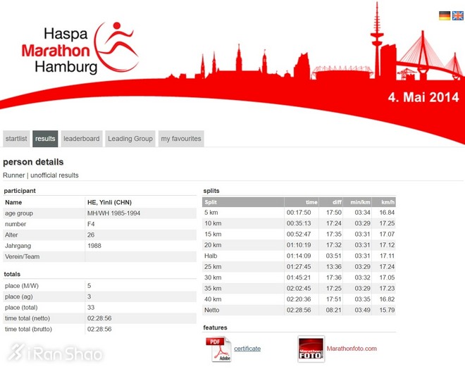 何引丽印象深刻的2014年汉堡马拉松,也是在那段时间从意大利飞过去跑的。