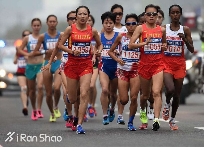 两届世锦赛之间的2014年10月,何引丽出征仁川亚运会,以2:33:46排名第六;来自江苏队的另一名中国队员岳超第五,2:33:20。