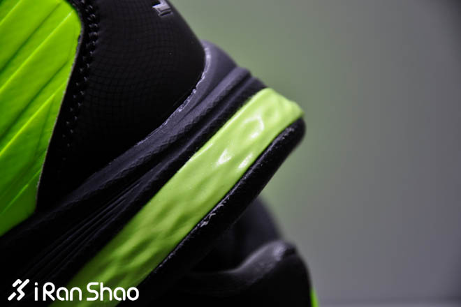 底部中间的TPU 为李宁独家的PROBA LOC技术,内腰防扭转的TPU占到大底约三分之一的面积,功能上可谓是相当给力的,支撑力非常出色。做工也非常精细,有大牌的品质感。