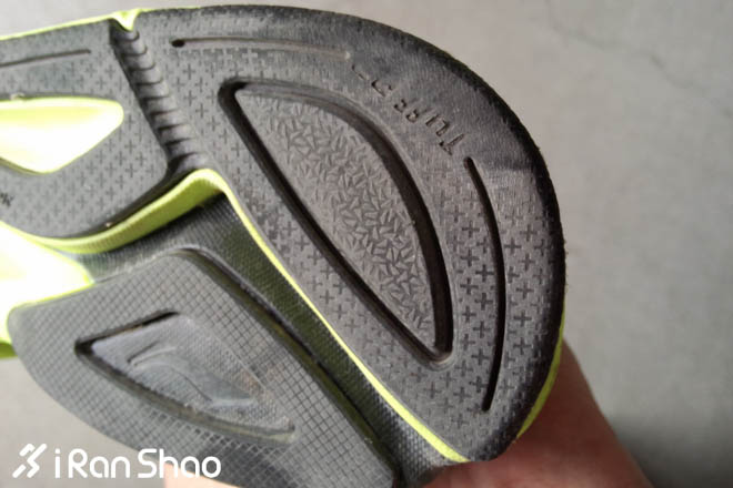 大底橡胶部分,整体的抓地性不错,耐磨橡胶TuffRB虽说李宁给出的数据比一般橡胶耐磨五倍,但通过几次短距离训练后也能看到有不同程度的明显磨损。建议李宁在品质方面能加强,卖点永远没有实用性有价值。