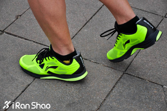 李宁推出新款跑鞋“双渡”,第一感觉就是这鞋子亮骚的不行,荧光绿配黑的颜色穿在脚上很快就可以抓住旁人的眼球,甚至在拍照时荧光绿会影响感光度,需要更仔细的聚焦。
