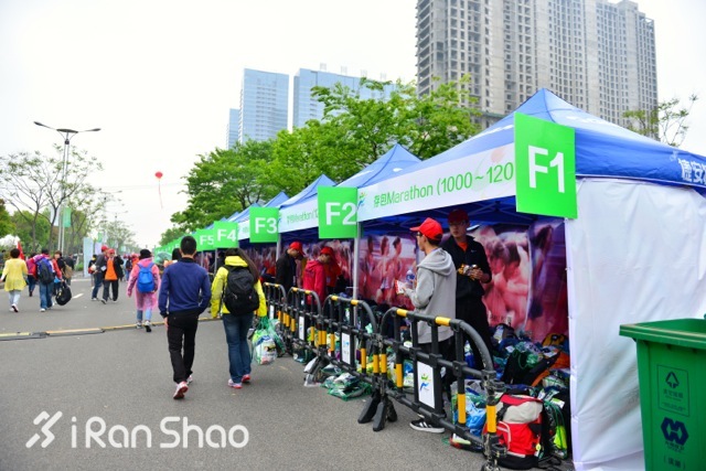 今天比赛当天起终点的分割区清晰而且合理。到处都有明确的指示牌和线路图。而且就本人的实际体验,组委会对起终点人流的规划做了很细致的考虑。在起点的存包区,厕所,起跑区按次序排布,不会出现人流对冲的情况。而终点冲线后可以按次序完成领奖品,领完赛纪念牌和领存衣包。而且专门设计了给选手拍照留念的背景板。