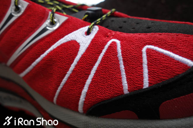 整个鞋面用简单连贯、延伸到后跟的”热切“线条构成,每条线条都延伸到最底下,主要是起到支撑的作用,而鞋头很巧妙的使用了“电脑绣花”技术,保证功能的情况下,更加柔软,灵活性、舒适性更高。