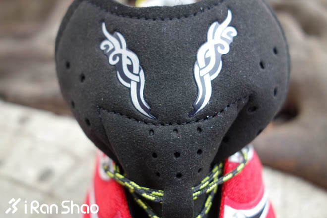 鞋舌选用透气柔软的“超纤”材料。并且多加了很多的透气孔,保证鞋子的透气性,美化之后的“fly”LOGO 像一对翅膀,也有腾云驾雾的感觉。