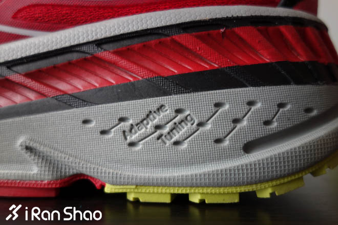 后跟看起来非常厚重,红黑灰的”隔色“主要是为了突出红的部分的减震槽。除了材料的减震、厚度的减震加上这个结构的减震,可以说,在减震上,这个模式已经无法再超越了吧。
