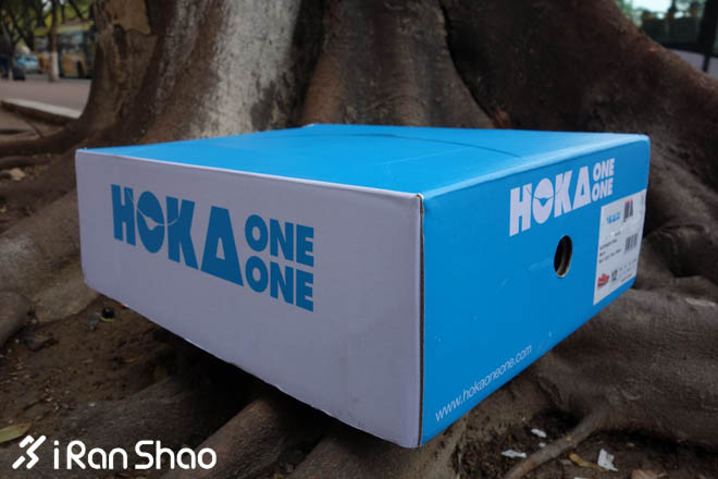 HOKA 的外盒设计非常简洁,大大的”HOKA ONE ONE“一如它鞋子庞大的身躯。”now it is time to fly”的类似“飞翔”的LOGO在盒子盖子上之外没有过多的装饰,标签上面熟悉的”made in china “显得有点让人扫兴,万里迢迢,翻山过海一个多月从大洋彼岸飘过来的鞋子还是“自家产”。