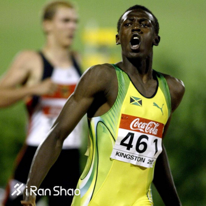 2002 年 7 月 19 日,能容纳三万人的牙买加国家体育场拥挤不堪,买不到票的观众们翻过高墙进入场内,没人知道体育场里到底涌入了多少观众。大家并不一定是冲着博尔特来的,在田径大国牙买加,这些幸运的观众有太多的高手可以崇拜。也许是天意,作为东道主兼田径大国的牙买加在本次世青赛上迄今还没有一枚金牌入账,被寄予厚望的女子 200 米选手安内莎刚刚以第二名的成绩结束了比赛。所以当博尔特作为唯一入围了男子 200 米决赛的牙买加选手踏入赛场的时候,全场观众都狂吼了起来。现在回看当年的比赛录像,每个人都会惊讶博尔特当时的样子,这个站在第三道上的少年有着宽宽的肩膀,下面挂着细弱的四肢,一点都不像是充满爆发力的短跑运动员,肩膀往上则是一张惊恐的脸庞,15 岁的他似乎被吓到了。后来博尔特回忆,在赛前准备时,他甚至紧张得把钉鞋穿错了脚。