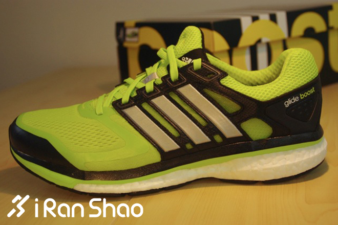 这款全新减震概念的跑鞋获得了2014年《Runnersworld》春季跑鞋编辑之选大奖。对这款鞋子同样充满期待的《爱燃烧》邀请了两位跑友率先体验了一把这款顶尖的跑鞋。Supernova Glide 6 整体结构简单,将标志性的三条纹“LOGO”镂空设计,立体感强,使整个鞋面在不失包裹性的情况下增强透气性。后跟TPU 做为后跟稳定性和包裹性的重要保障。Adidas 设计上一向给人线条硬朗的感觉,而这系列的Glide 用抢眼的颜色增强时尚感。