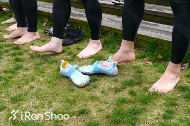 吉野刚针对几个观点进行了一些有趣的训练,比如让大家脱下鞋子感受一下赤足的感受。身体前倾感受利用重力向前跑的感觉。
