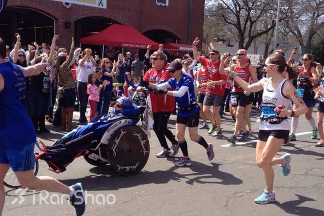 在本次直播的画面中,同样会被我们记住的,还有那些奋力拼搏的轮椅运动员,赛场上的传奇 Team Hoyt 父子,沿途观众热情的欢呼。一年之后,波士顿用自己的方式重新出现在世界面前,以实际行动宣告:“Boston Strong!”(坚强波士顿)