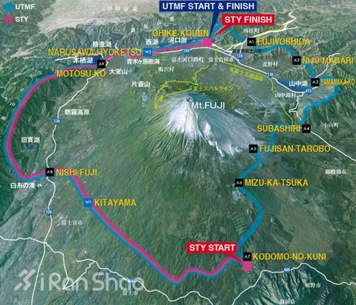 起点位于富士山南侧的静冈县(正好是UTMF比赛线路的中间),终点在北侧的山梨县。
