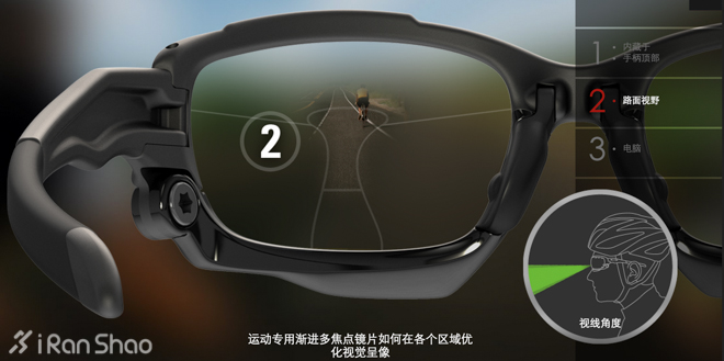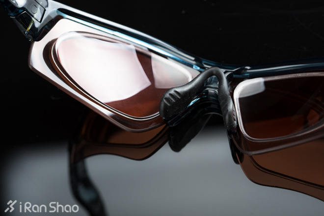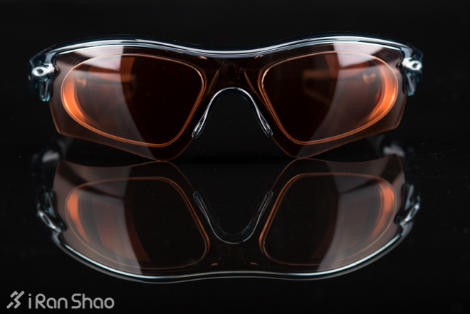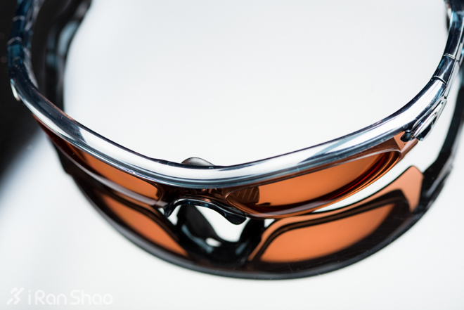 外观上看OTD产品与传统Oakley运动功能眼镜没有很大的区别,但玄机就藏在这片使用双重镜缘技术处理的专业镜片里。