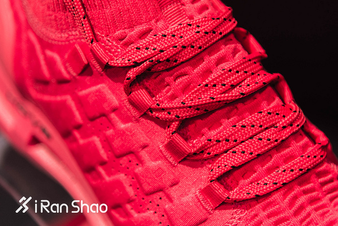 UA在与陶氏化学的合作中并没有将烯烃材料照搬照用,而是将自家的紧身衣想法加到了中底设计中。因此打造类似于渔网结构一样的Energy Web网格织物,将烯烃泡棉包裹在其中。