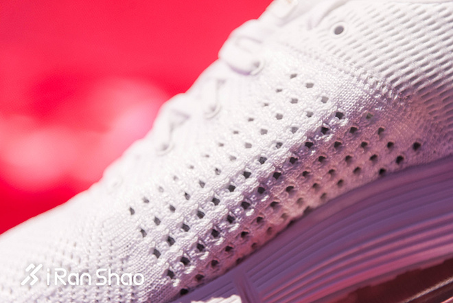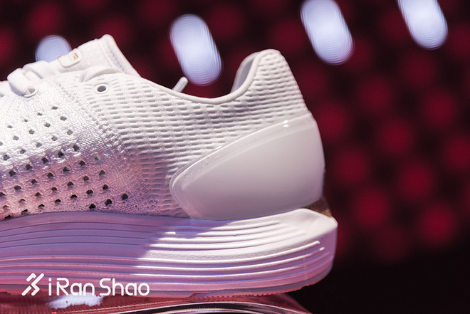 另外足弓的两侧鞋面使用了偏硬的印花设计,这样可以增加两侧鞋面的支撑性。后跟位置搭载了U性的硬质材料,来保证后跟的稳定性和包裹性。Phantom的鞋口则是用了目前跑鞋比较流行的编织设计,好看大于实用。