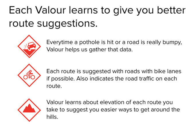 同时Vanhawks Valour在行车的同时会自动采集行车路线的各种实时路况信息,并将这些道路平整坑洼或是封闭绕路的情况分享到Vanhawks Valour的共享网络,为下次出行或他人提供选择的方便。