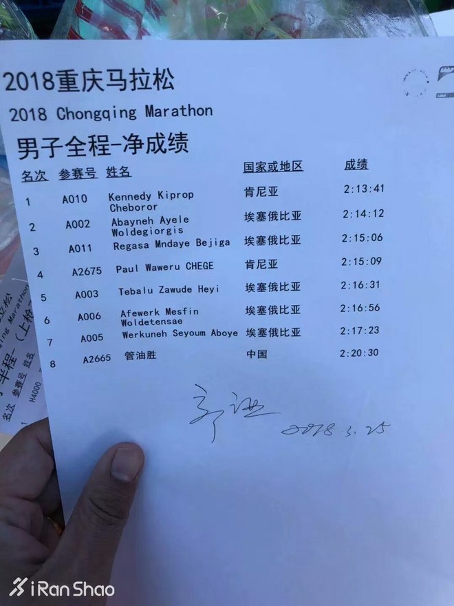 重庆马拉松国际第八兼国内第一,是同为三亚国内第一、而且同样来自贵州的管油胜。