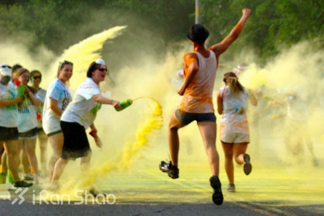 The Color Run(彩色跑)是一项风靡全球的 5 公里趣味跑系列赛,该赛事现已遍布北美、南美、欧洲、亚洲和澳洲。比赛不争名次,不设奖金,却吸引了成千上万的跑者参加。整个5公里的赛道上,参赛的跑者一路会被各色彩粉“轰炸”,全场 high 翻天。