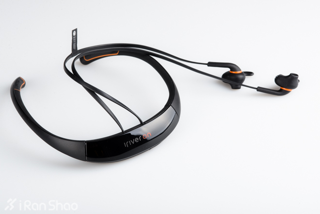 iriverOn外观设计简单明快,佩戴于颈部的通话与控制项圈通过面条小宽线与整合了传感设备的耳机相连。