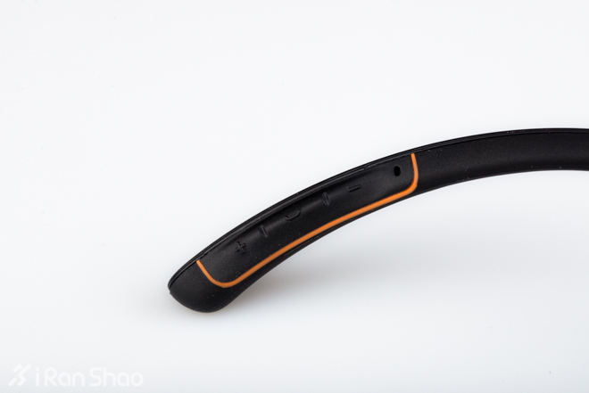项圈的两端分别布置着音乐的功能播放按键,音量大小控制,通话与挂断以及通话麦克风。项圈虽然重量不大,但在运动过程中带来的颠簸还是会给佩戴者带来一些不适。