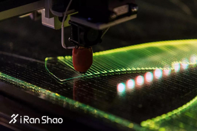 Nike Flyprint鞋面是通过固态沉积的方式塑造形态(SDM),此项工艺就是将TPU纤维从线圈上松开,并且融化,进而层层编织、固化的过程。