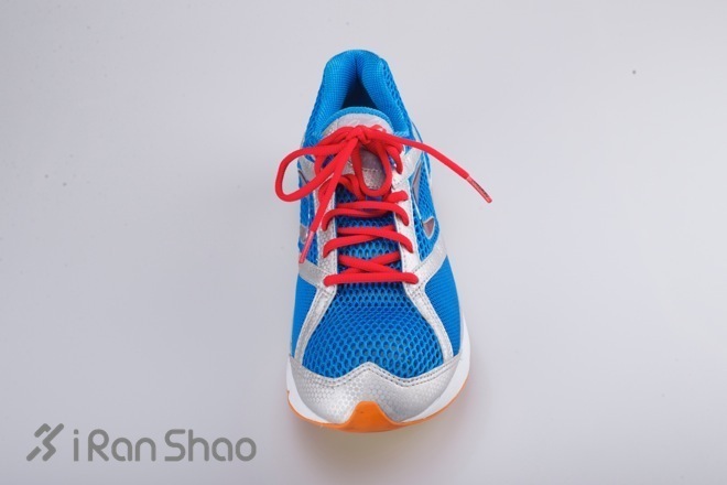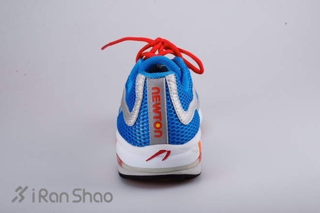从鞋正面看,鞋头部分微微隆起,给脚趾足够宽松的空间。鞋底在足尖部分微微凸起的橙色是newton鞋的经典用色。