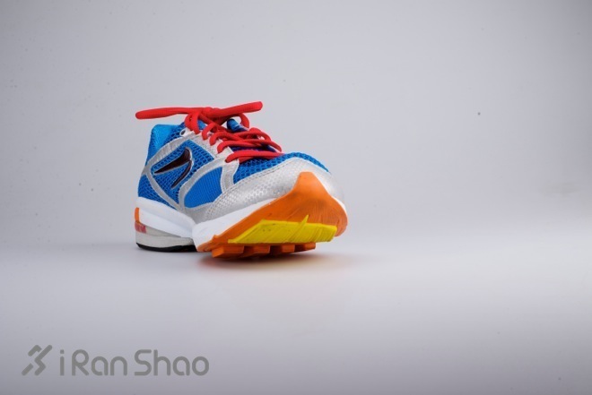 从鞋的外侧可以看,鞋底头部翘起较大的弧度,由此可见newton所倡导的正是前足掌着地跑法。