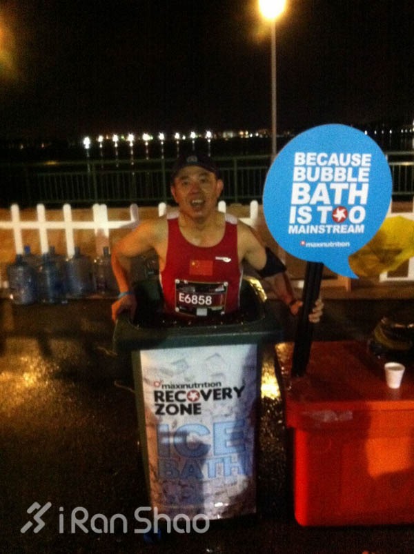 东南亚国家一年四季气候炎热,所以很多马拉松的发枪时间在深夜,五花八门,时间各异。早的有丑时就开跑,四五点都算很迟的,名气不小的是狮城新加坡的 Sundown 马拉松,其实应该叫Sunrising。子时起跑哪看得到日落,倒是早上八点才关门,很多跑者是迎着朝霞在奔跑。跑完这个比赛我曾发誓再也不去新加坡跑马。气候那个闷热,气温那个高,流不停的汗,永远解不了的渴,太痛苦啦!其实,哪次比赛不痛苦,只是这痛苦忘得忒快。话说回来,夜间跑步的感受也不差,特别是East Coast那段赛道上通宵不归的人间万象,时不时能冒出点事儿给你提提神,大胆一点的尽可找人要瓶啤酒解渴;记忆深刻的还有终点的 ice bath,把整个身子浸泡在冰水中几秒,排酸效果极佳。